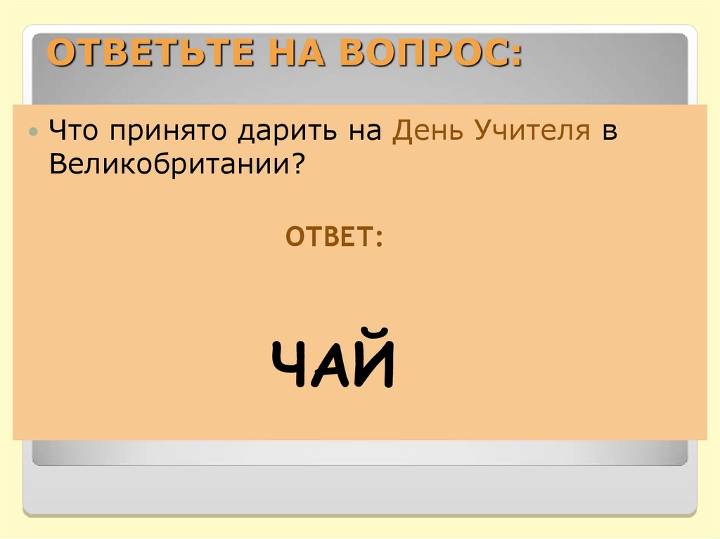 ОТВЕТЬТЕ НА ВОПРОС:Что принято дарить на День Учителя в