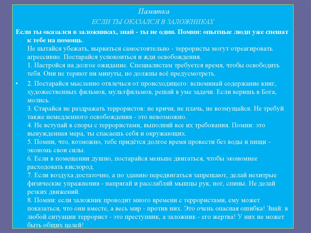 ПамяткаЕСЛИ ТЫ ОКАЗАЛСЯ В ЗАЛОЖНИКАХ