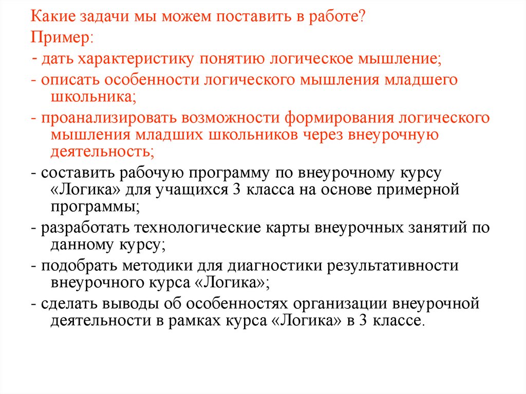 Какие задачи мы можем поставить в работе?Пример: