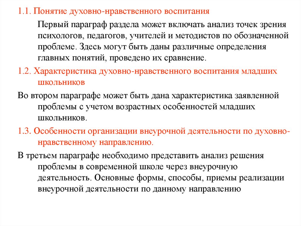 1.1. Понятие духовно-нравственного воспитанияПервый параграф раздела может включать анализ точек зрения