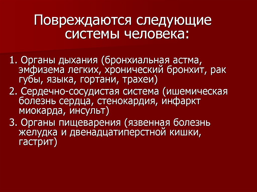 2. Влияние курения на организм человека