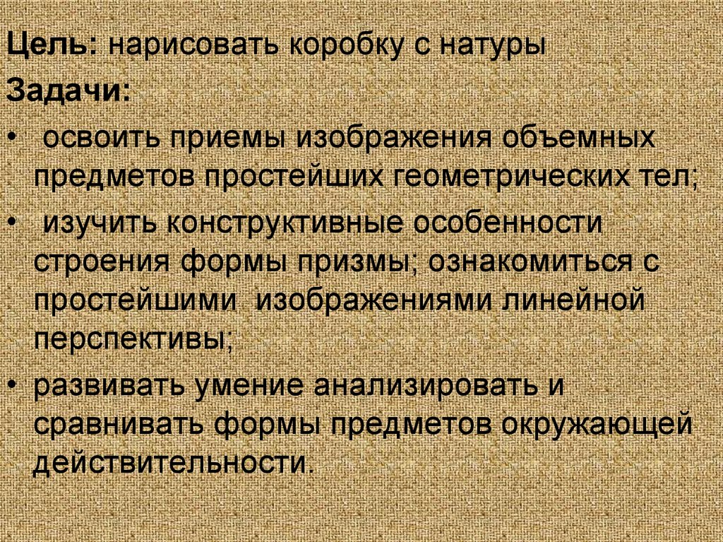 1. Изучаем азбуку изобразительного искусства. Рисование с натуры коробки.