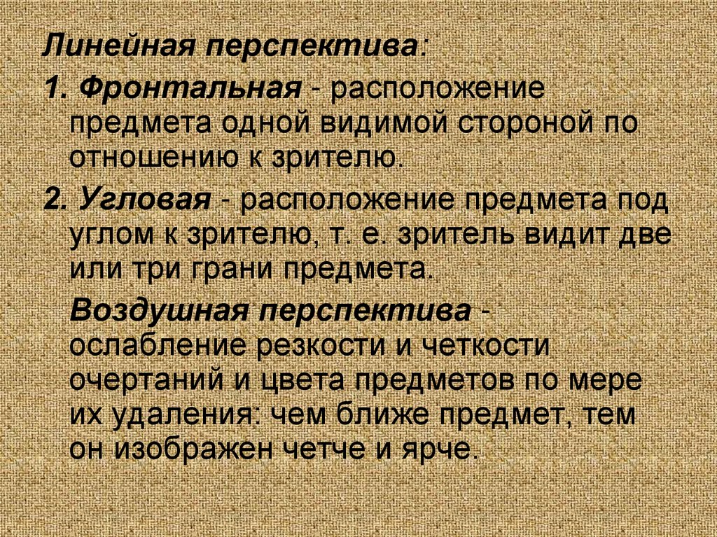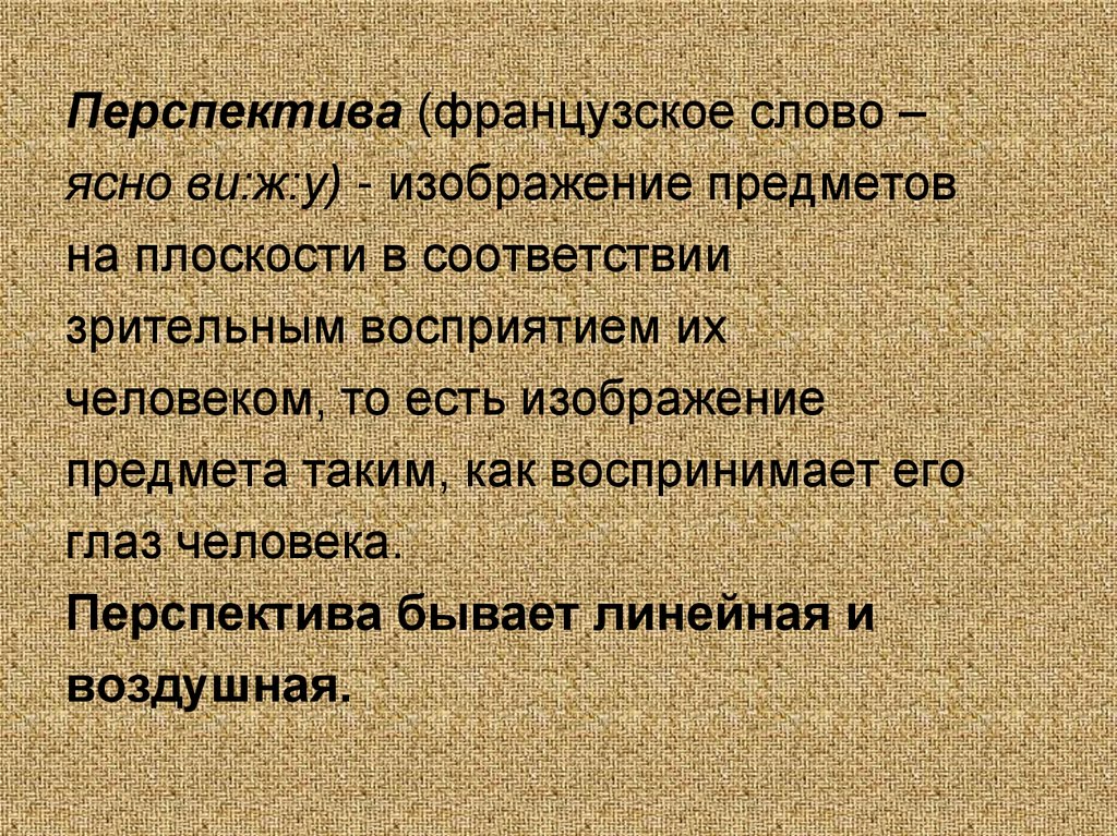 Перспектива (французское слово –ясно вu:ж:у) - изображение предметов