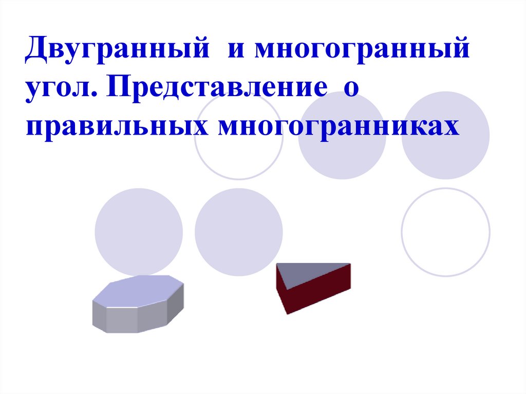 Двугранный и многогранный угол. Представление о правильных многогранниках