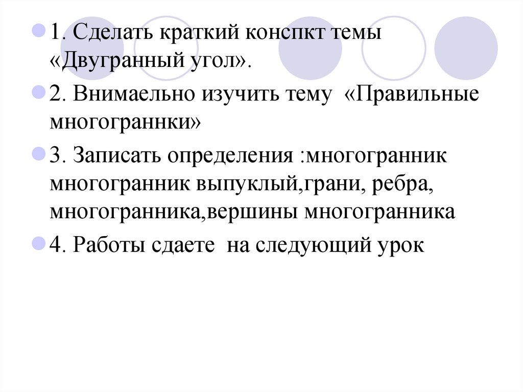 1. Сделать краткий конспкт темы«Двугранный угол».