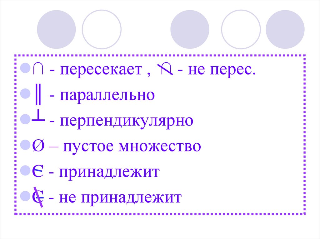 ∩ - пересекает , ∩ - не перес.║ - параллельно