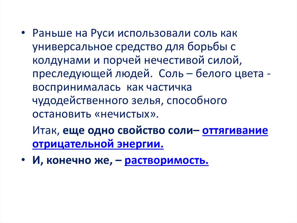 • Раньше на Руси использовали соль какуниверсальное средство для борьбы с