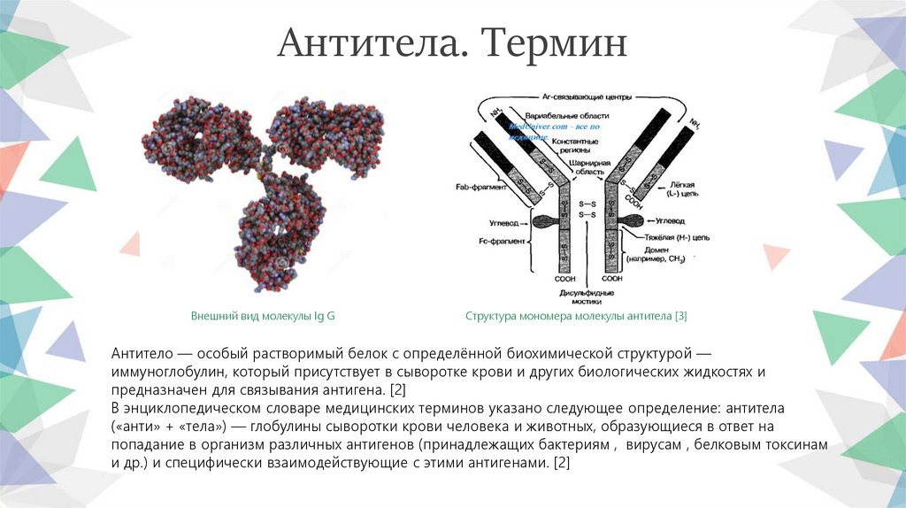 («анти» + «тела») — глобулины сыворотки крови человека и животных, образующиеся в ответ на