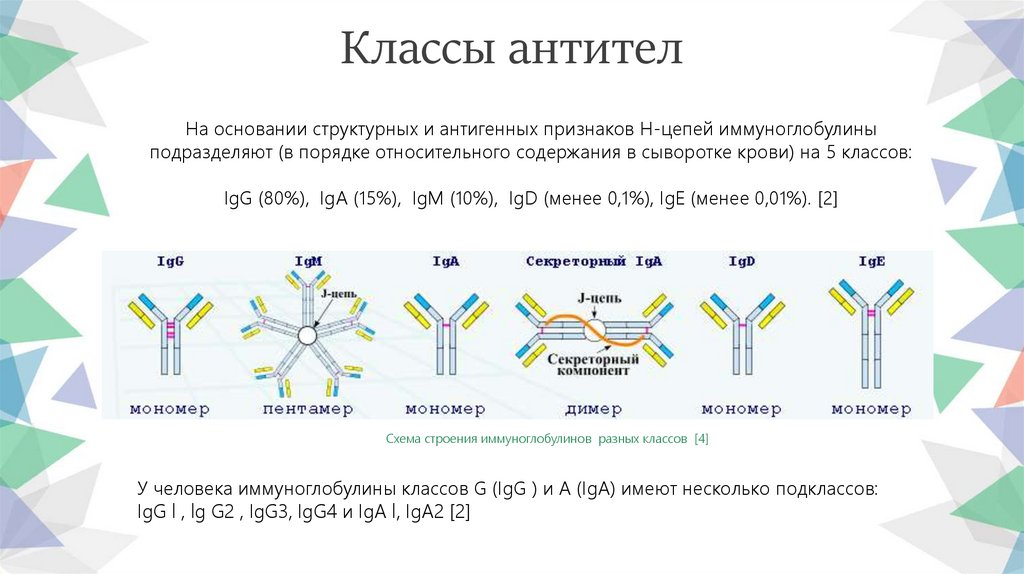 IgG l , lg G2 , IgG3, IgG4 и IgA l, IgA2 [2]