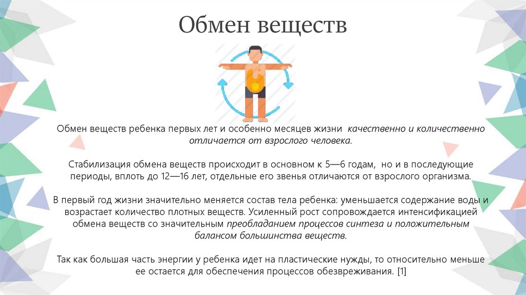 Стабилизация обмена веществ происходит в основном к 5—6 годам, но и в последующие