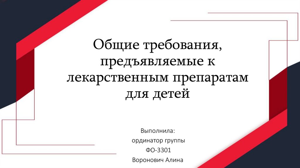 1. Общие требования, предъявляемые к лекарственным препаратам для детей