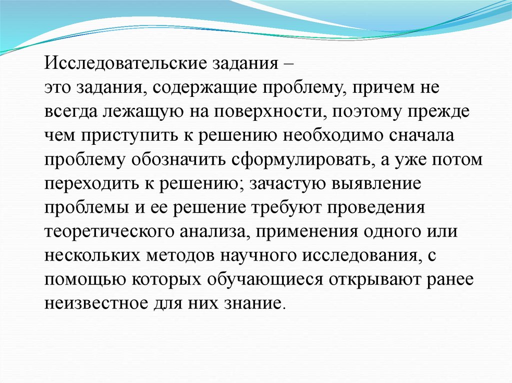 Исследовательские задания –это задания, содержащие проблему, причем не