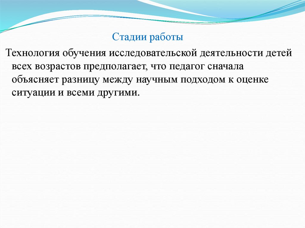 Стадии работыТехнология обучения исследовательской деятельности детей