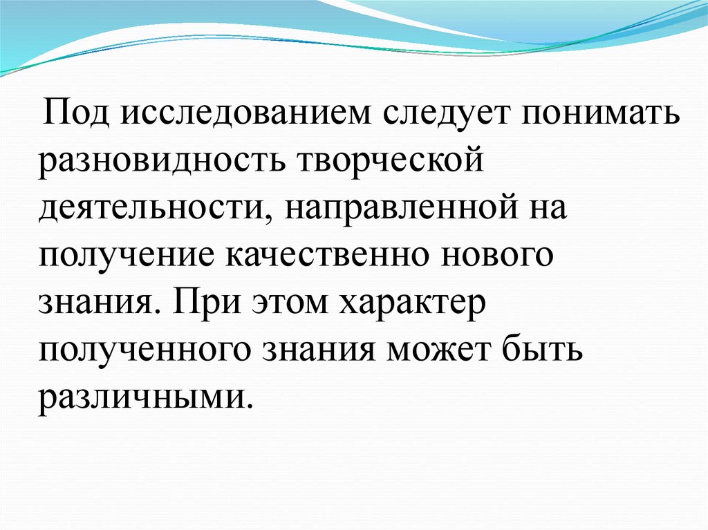 Под исследованием следует пониматьразновидность творческой