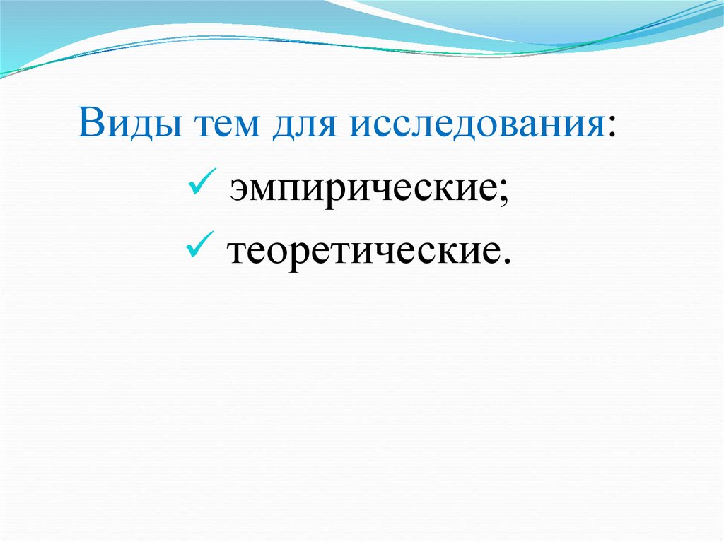 Виды тем для исследования:эмпирические;