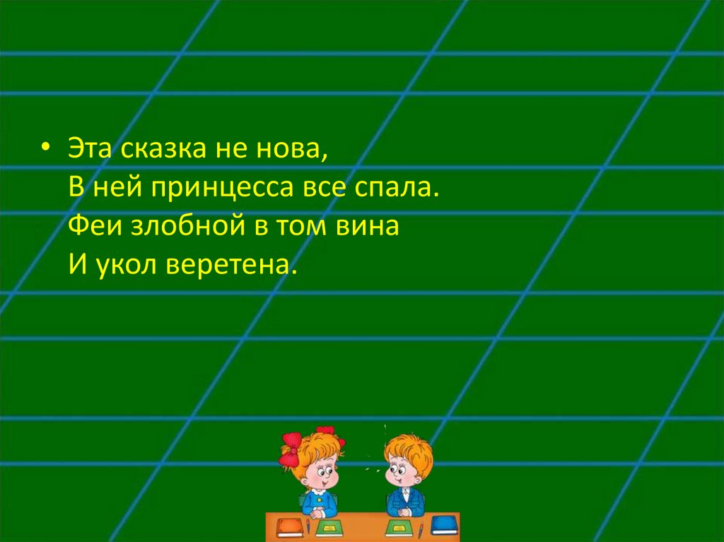 • Эта сказка не нова,В ней принцесса все спала.
