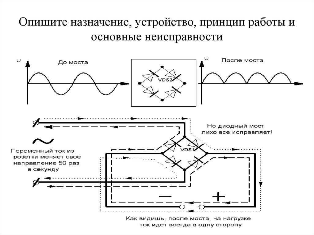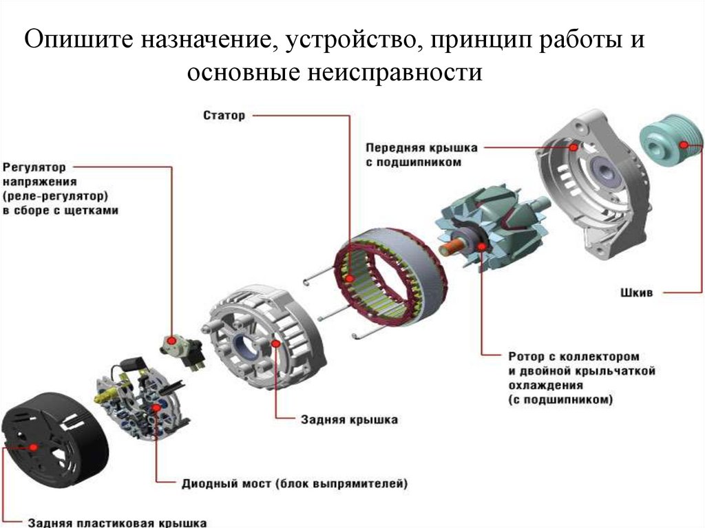 Опишите назначение, устройство, принцип работы иосновные неисправности