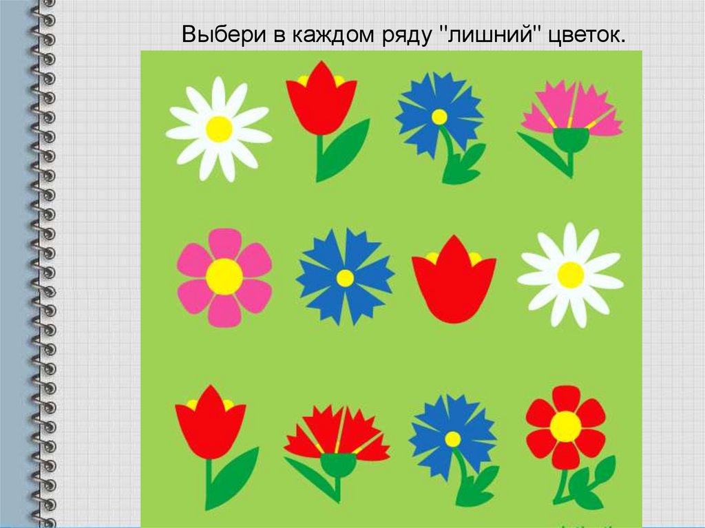 Выбери в каждом ряду "лишний" цветок.16.