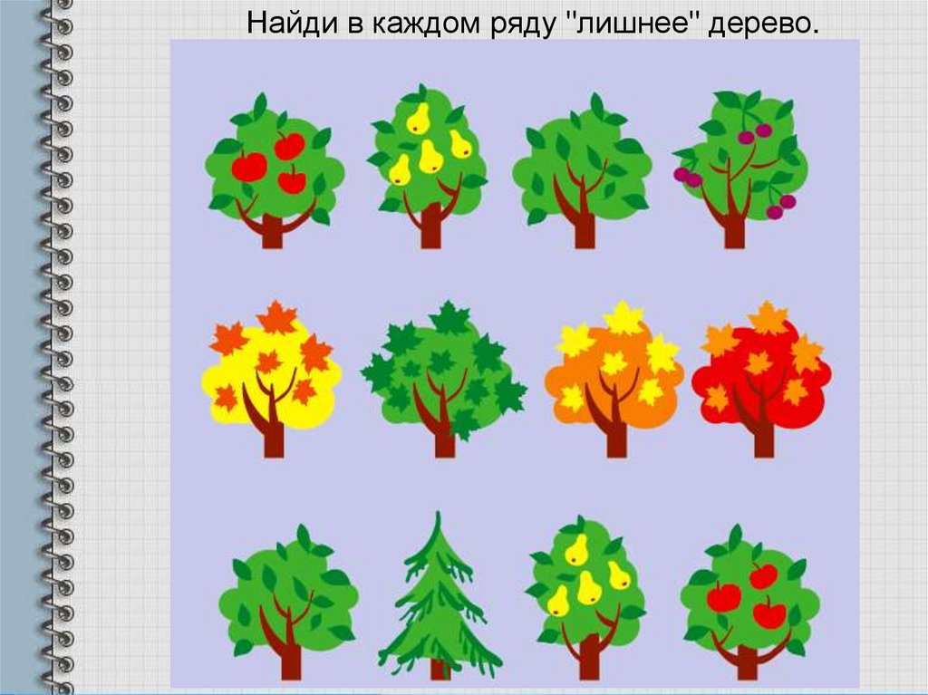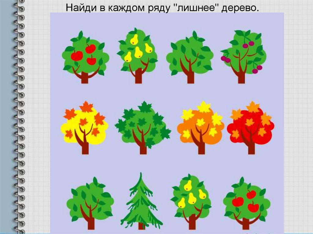 Найди в каждом ряду "лишнее" дерево.7.