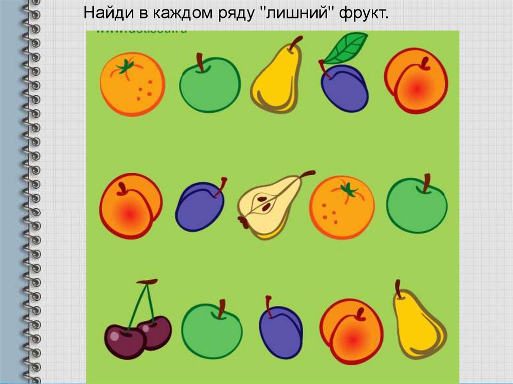 Найди в каждом ряду "лишний" фрукт.8.