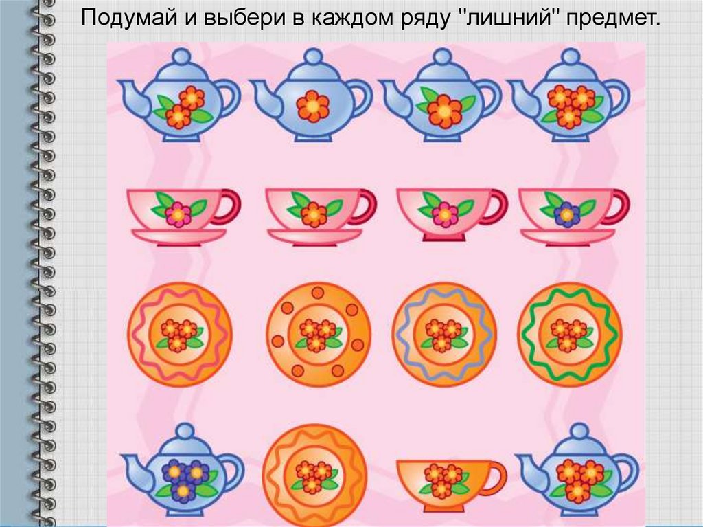 Подумай и выбери в каждом ряду "лишний" предмет.9.