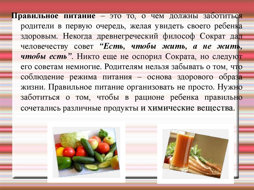 Правильное питание – это то, о чем должны заботитьсяродители в первую очередь, желая увидеть своего ребенка
