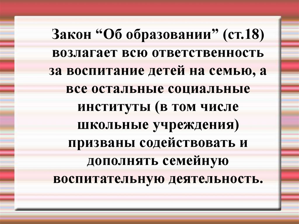 Закон “Об образовании” (ст.18)возлагает всю ответственность