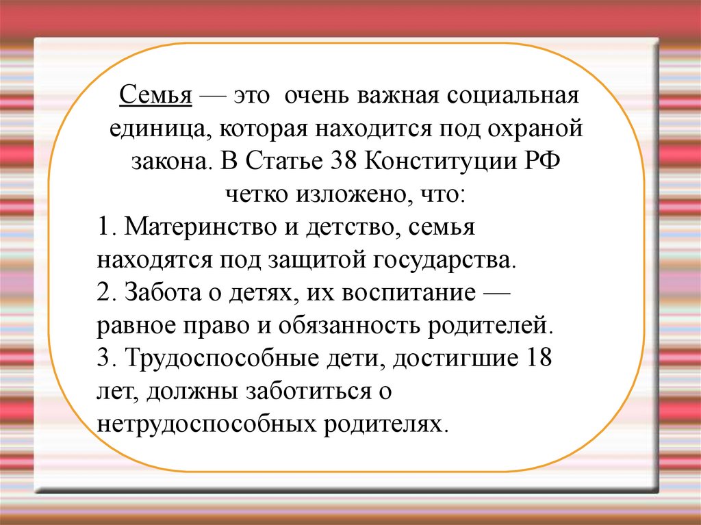 Семья — это очень важная социальнаяединица, которая находится под охраной
