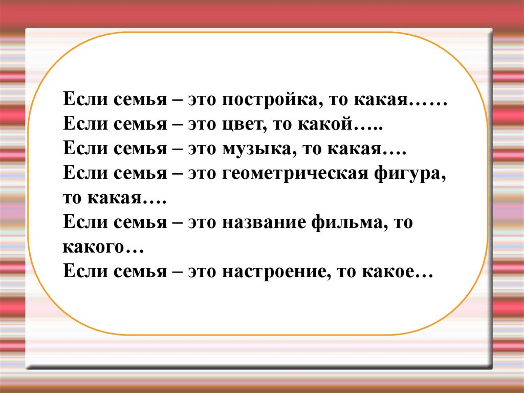 Если семья – это постройка, то какая……Если семья – это цвет, то какой…..