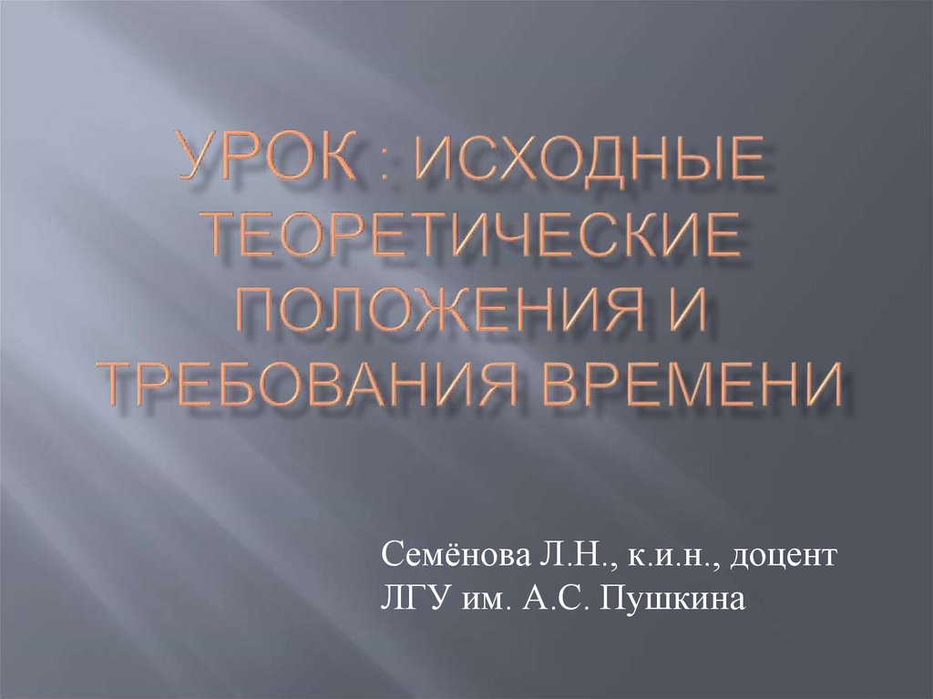 1. УРОК : исходные теоретические положения и требования времени