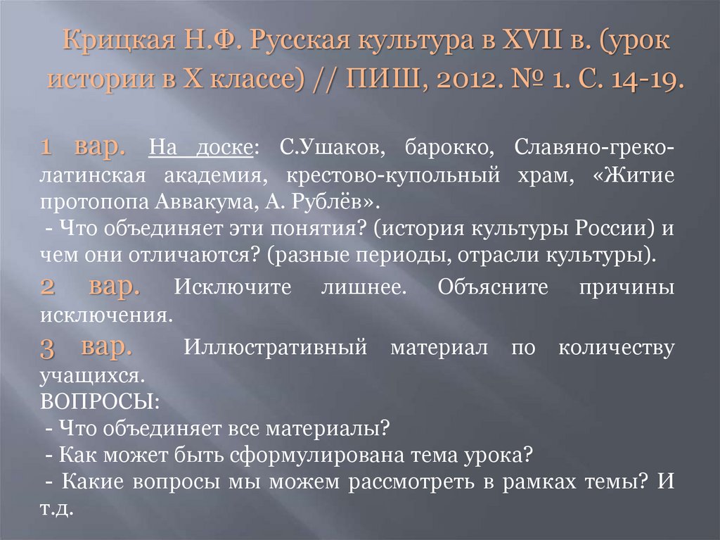 • Иоффе, А.Н. Структура современного урока истории и