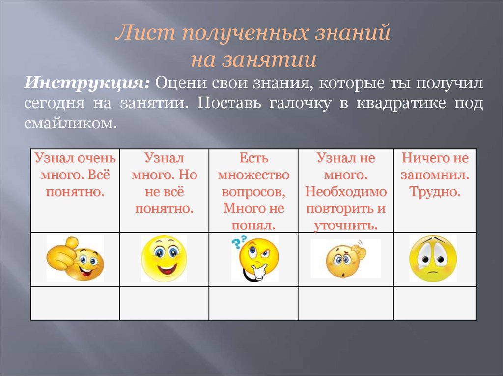 для себя на прошедшем уроке?