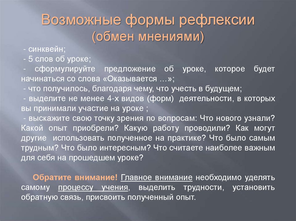 Возможные формы рефлексии(обмен мнениями)