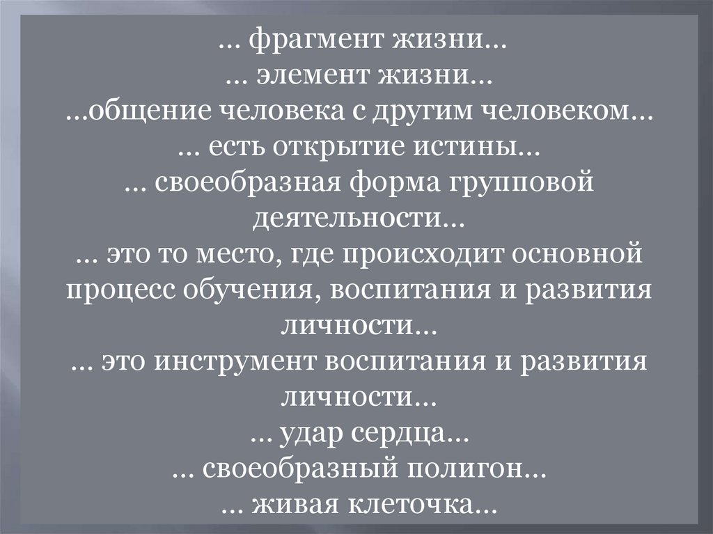… фрагмент жизни…… элемент жизни…
