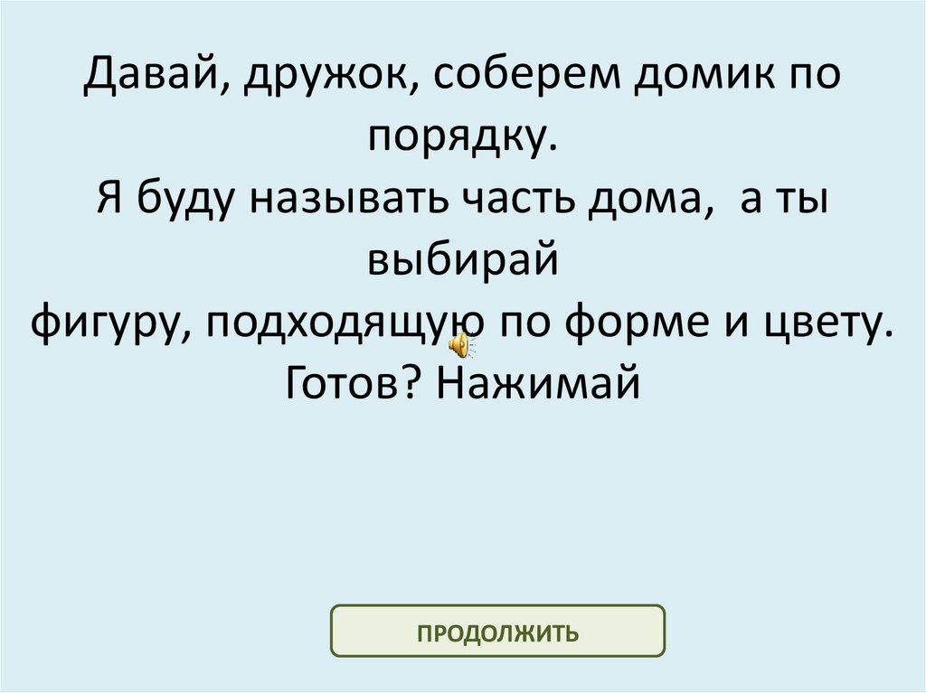 Давай, дружок, соберем домик попорядку.
