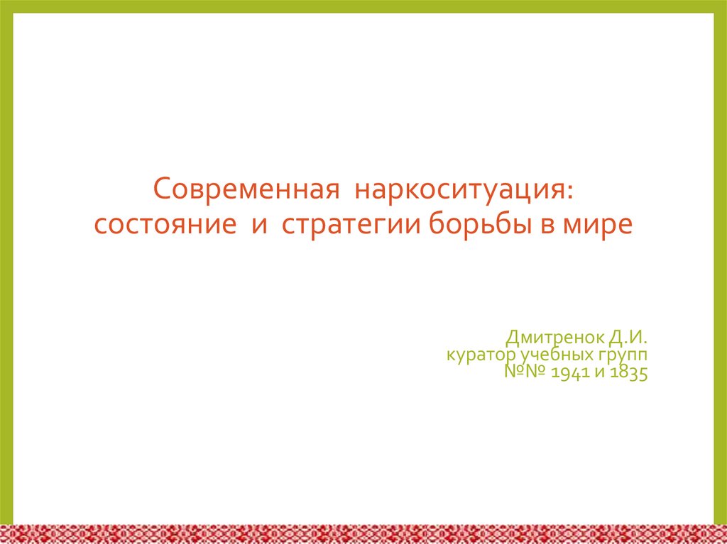 Современная наркоситуация:состояние и стратегии борьбы в мире