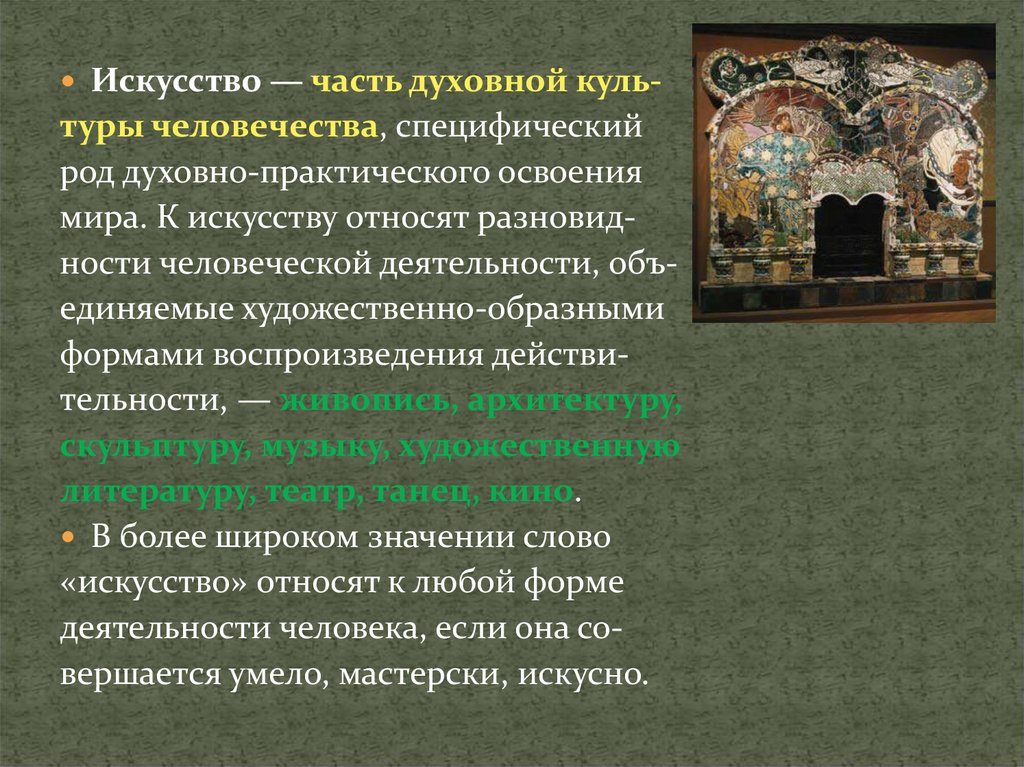 мира. К искусству относят разновидности человеческой деятельности, объединяемые художественно-образными