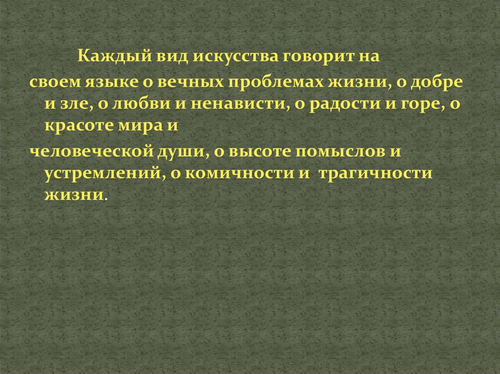 Каждый вид искусства говорит насвоем языке о вечных проблемах жизни, о добре