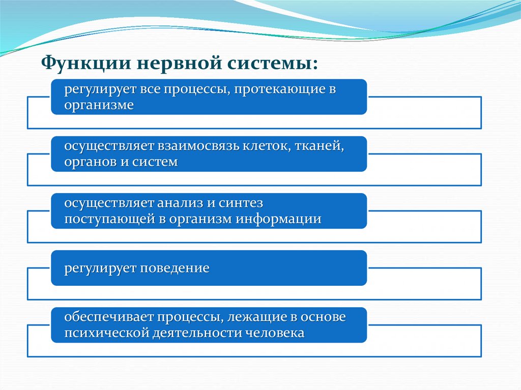Функции нервной системы:регулирует все процессы, протекающие в