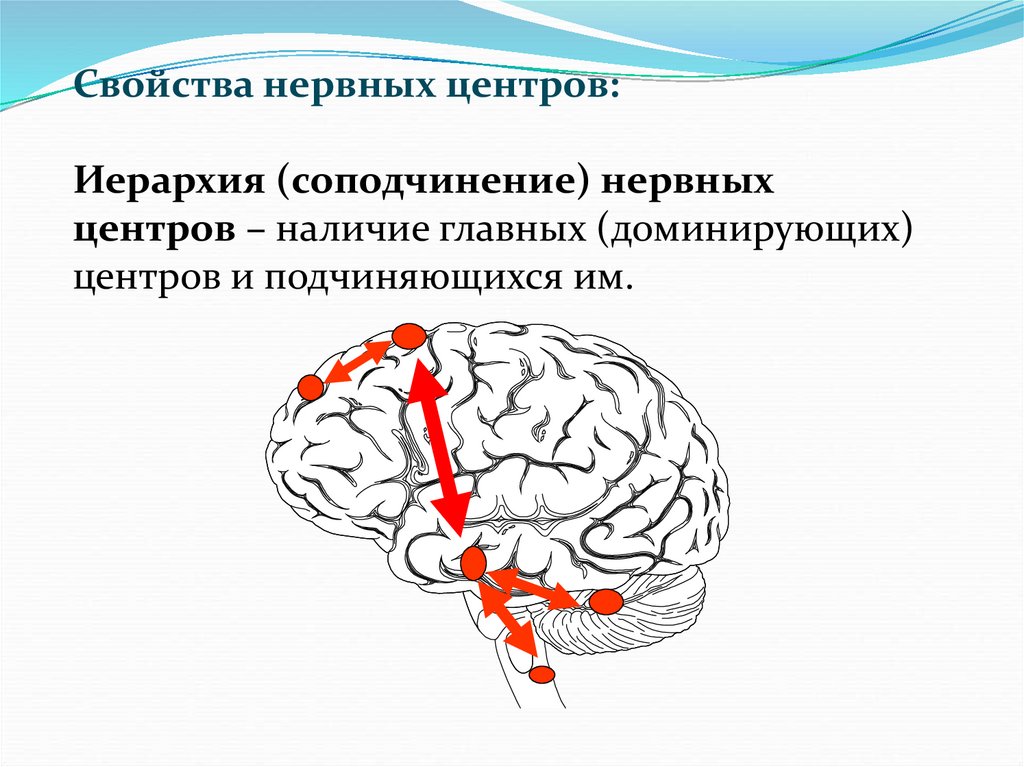 Свойства нервных центров:Иерархия (соподчинение) нервных
