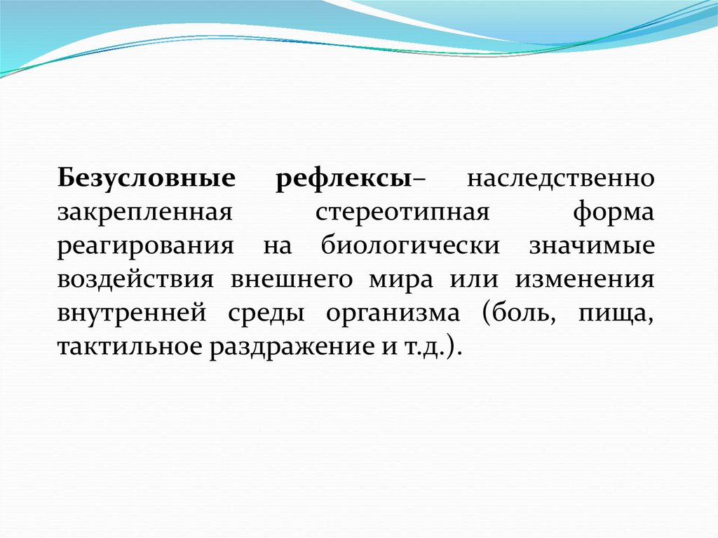 Безусловные рефлексы– наследственнозакрепленная