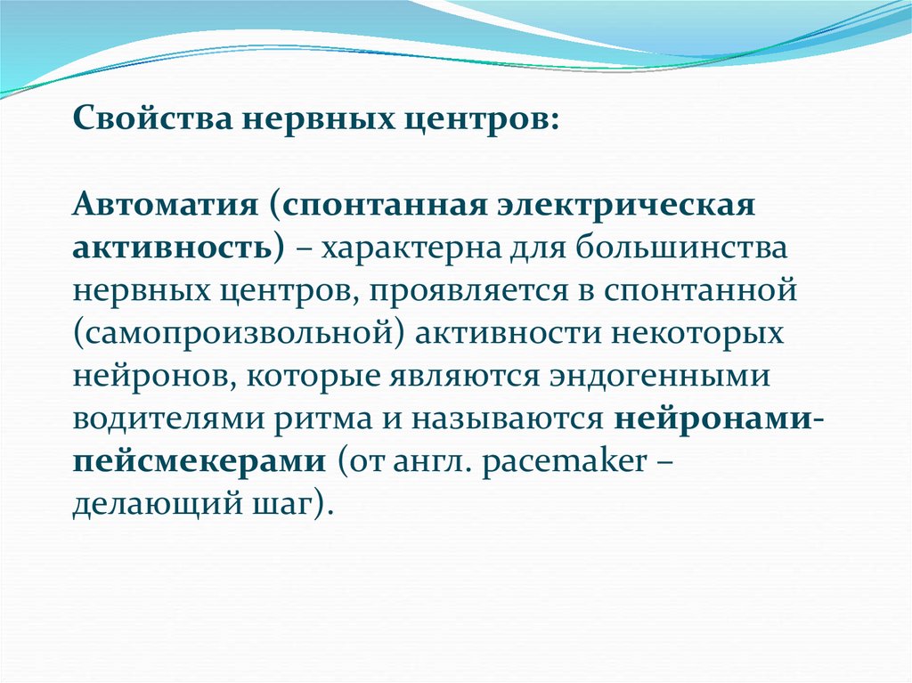 Свойства нервных центров:Автоматия (спонтанная электрическая