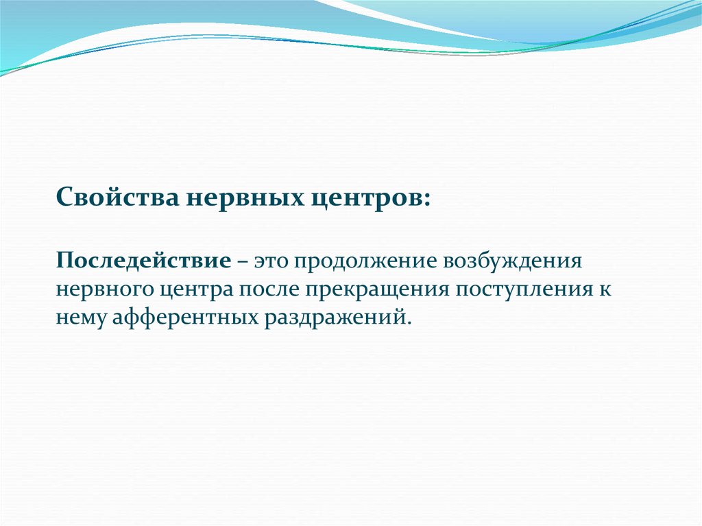 Свойства нервных центров:Последействие – это продолжение возбуждения
