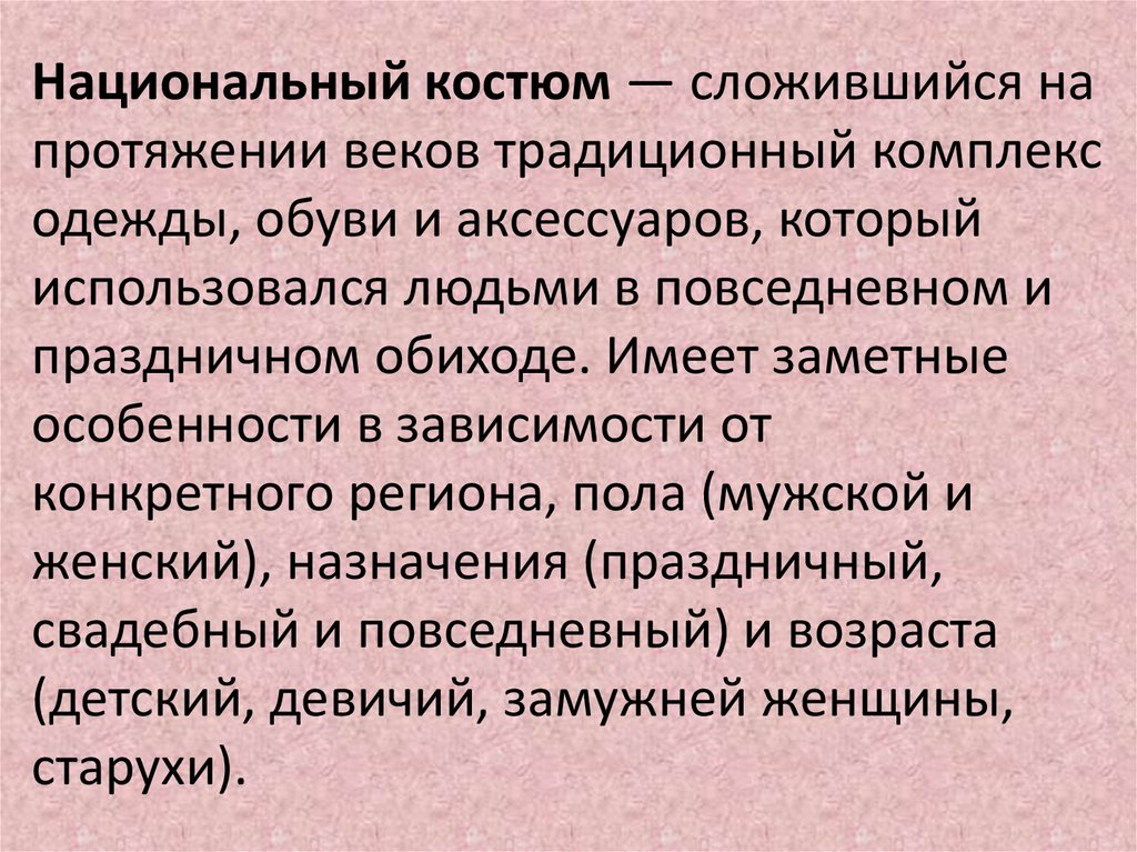 Национальный костюм — сложившийся напротяжении веков традиционный комплекс