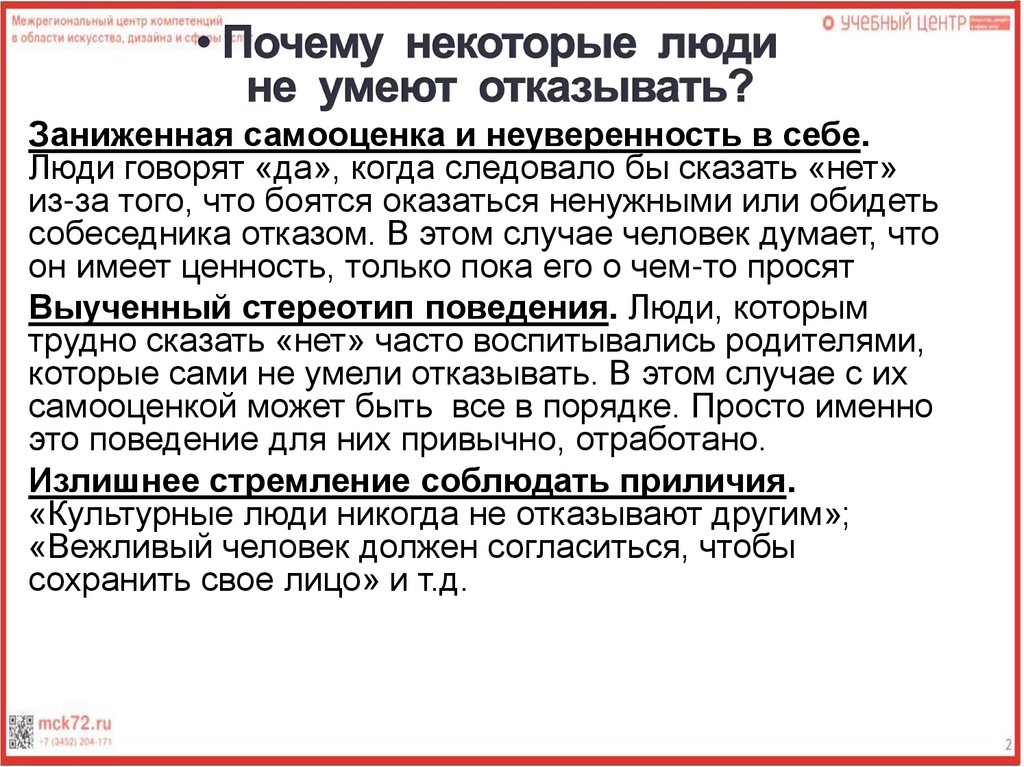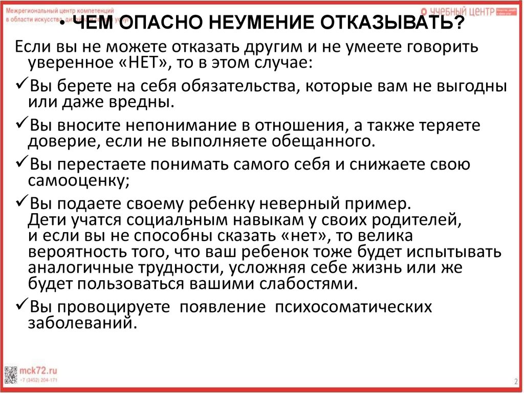 • ЧЕМ ОПАСНО НЕУМЕНИЕ ОТКАЗЫВАТЬ?Если вы не можете отказать другим и не умеете говорить