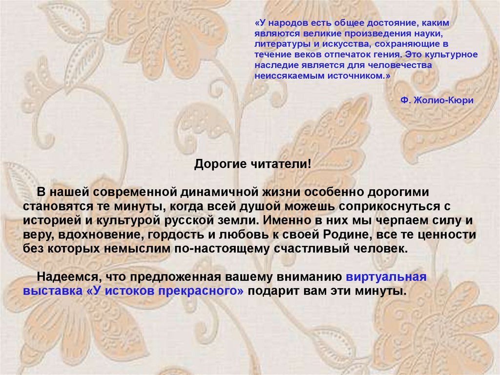 историей и культурой русской земли. Именно в них мы черпаем силу и