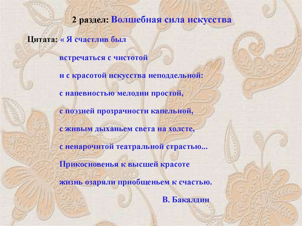 2 раздел: Волшебная сила искусстваЦитата: « Я счастлив был
