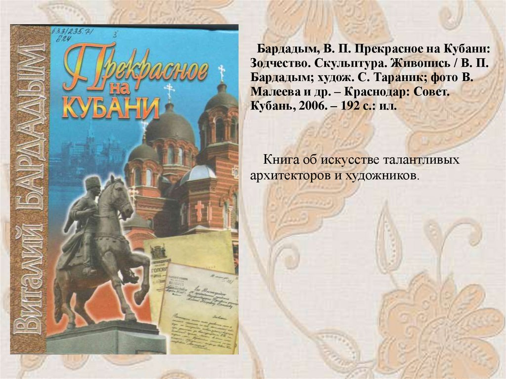 Бардадым, В. П. Прекрасное на Кубани:Зодчество. Скульптура. Живопись / В. П.