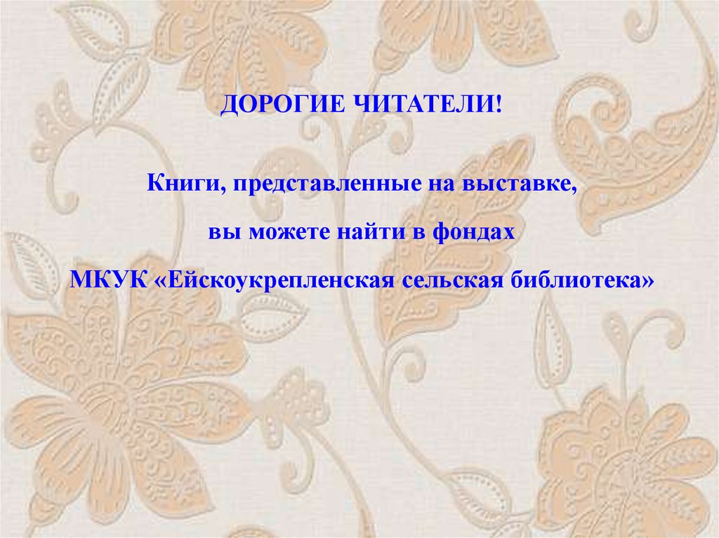 ДОРОГИЕ ЧИТАТЕЛИ!Книги, представленные на выставке,