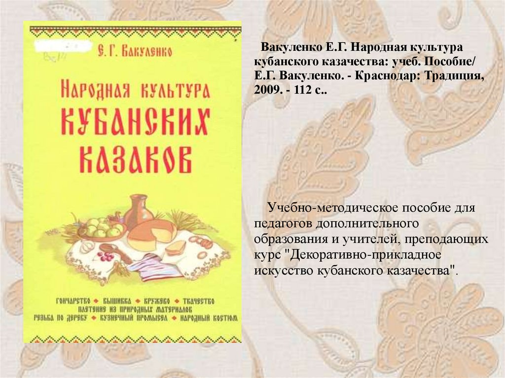 Вакуленко Е.Г. Народная культуракубанского казачества: учеб. Пособие/